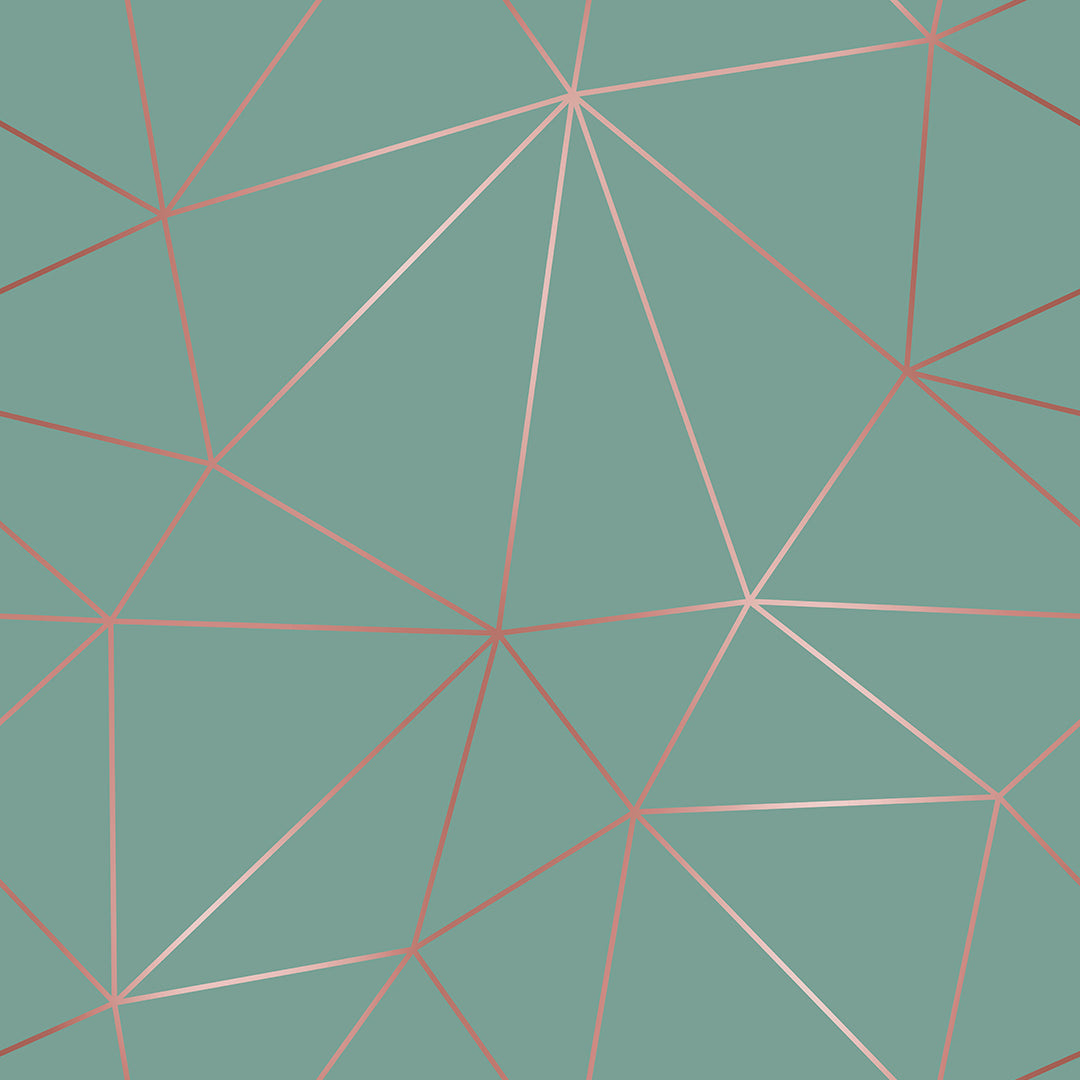 Die Rosegold Mint Tapete kombiniert sanftes Mintgrün mit schimmernden roségoldenen Linien. Das geometrische Design bringt Leichtigkeit und Eleganz in jeden Raum – perfekt für ein stilvolles Wohnzimmer, Schlafzimmer oder Home-Office.